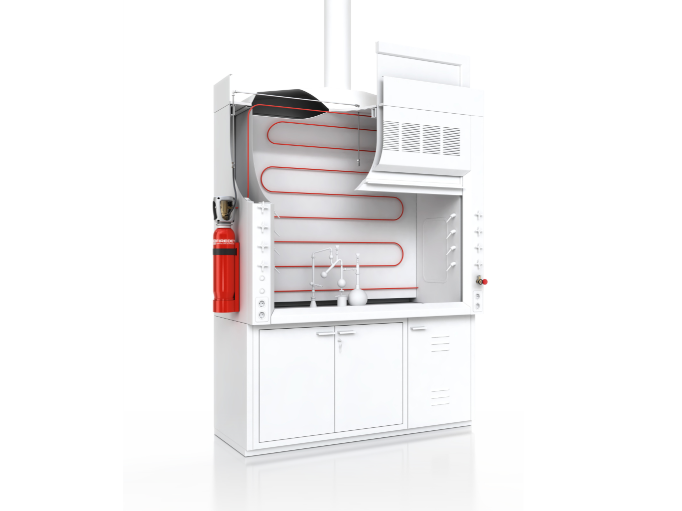 A função primária de uma Capela de Exaustão é exaurir vapores, gases e fumos, mas serve também, como uma barreira física entre as reações químicas e o ambiente de laboratório, oferecendo assim uma proteção aos usuários e ao ambiente contra a exposição de gases nocivos, tóxicos, derramamento de produtos químicos e fogo.