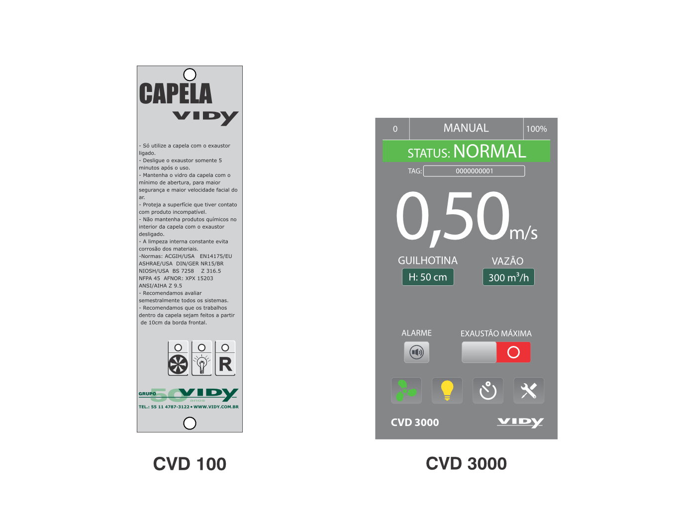 Todas as Capelas de Exaustão Vidy são construídas nas mais diferentes formas e materiais de acordo com a sua finalidade e baseadas nas normas internacionais como por exemplo a EN 14175, dentre outras, destacando-se pela sua excelente performance nos quesitos: segurança, aerodinâmica e resistência.