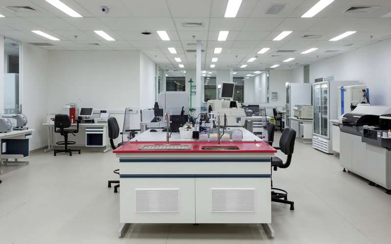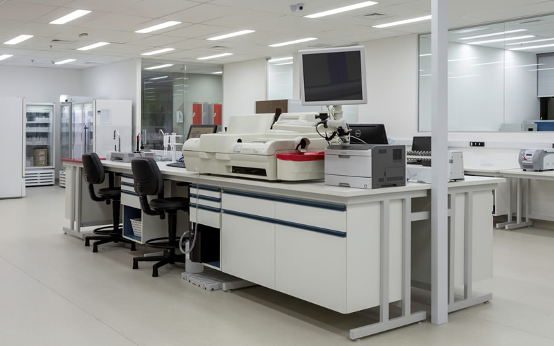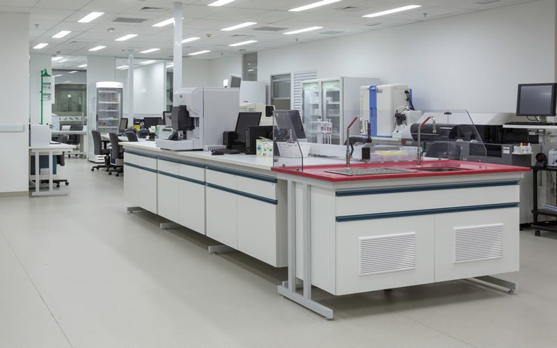 Estes laboratórios, construídos em ambiente de Sala Limpa, utilizam materiais altamente resistentes, de fácil manutenção e descontaminação, como por exemplo, os tampos em SSM PMMA (Superfície Sólida Mineral com Polimetilmetacrilato).