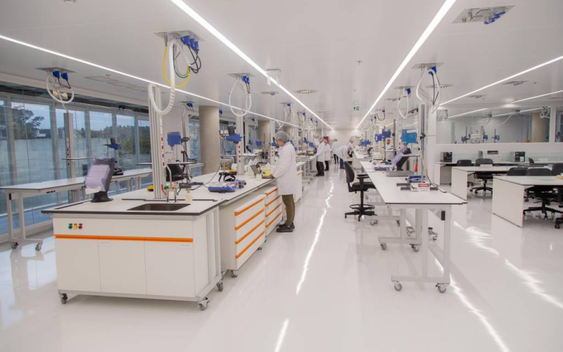 “Se o antigo lugar de testes era todo feito de alvenaria, o novo laboratório foi construído para ser flexível”, diz Daniel Gonzaga, Diretor de Inovação e desenvolvimento da Natura. Todas as bancadas têm rodízios e podem ser movidas livremente pelo laboratório. Espalhadas pelo piso ficam torres para ligar equipamentos, como agitadores e aquecedores e saída para ar condicionado. Até a água e o esgoto chegam e saem por meio desses totens e pelo teto, ao invés de instalações fixas.