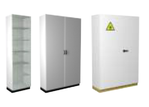 Oferecemos uma grande variedade de modelos de armários para diversos tipos de armazenamento para o laboratório. Armários de Chão e Suspensos Construídos em chapas de madeira de 18 mm, revestidos em Laminado Melamínico em todas as faces nas cores Argila (cinza claro) ou Branca. Completam os armários: prateleiras internas em chapa de madeira revestida em todas as faces com Laminado Melamínico; reguláveis/removíveis apoiam-se em suporte de latão). Painel traseiro em Duraplac ou chapa de madeira revestida com Laminado Melamínico. Módulos Inferiores Construídos em MDF revestido com Laminado Melaminico em todas as faces, dispondo de 4 rodízios de alta performance sendo 2 com freios. As gavetas são do tipo “cuba” em Vacuum-Forming deslizando sobre trilhos em aço, revestidos com pintura eletrostática de Epoxi.