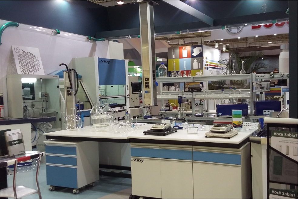 O design do mobiliário oferece flexibilidade ao layout do laboratório, utilizando estruturas metálicas modulares, com ou sem rodízios, que acomodam perfeitamente os módulos fixos ou móveis e dispõem de inúmeros tipos de tampos de acordo com as necessidades de resistência física e química.